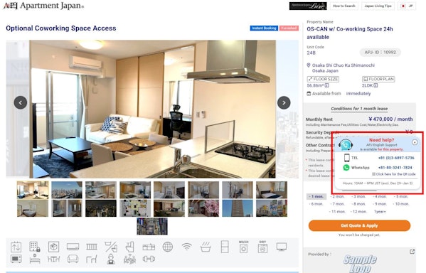 「APJサポートサービス」は、「APJ」上の物件詳細画面の専用アイコンからコールセンター(電話/SNS)にアクセスでき、英語で一次対応いたします。必要に応じて加盟店へ確認のうえコールバックし、内容を翻訳してご案内。申込・契約手続きまで伴走し、入居期間中の問い合わせにも一次対応いたします。