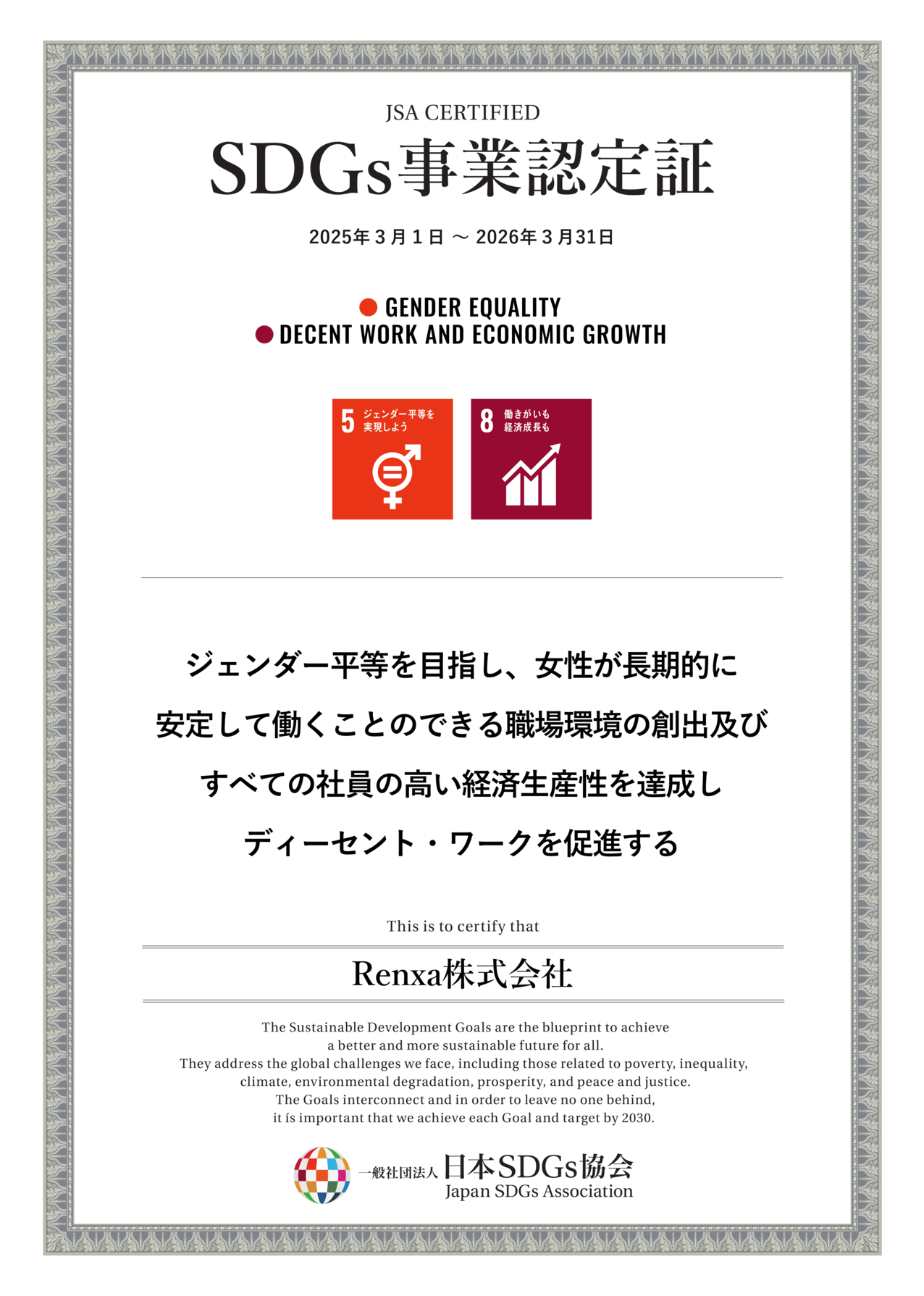ジェンダー平等を目指し、女性が長期的に安定して働くことのできる職場環境の創出及びすべての社員の高い経済生産性を達成し、ディーセント・ワークを促進する。
